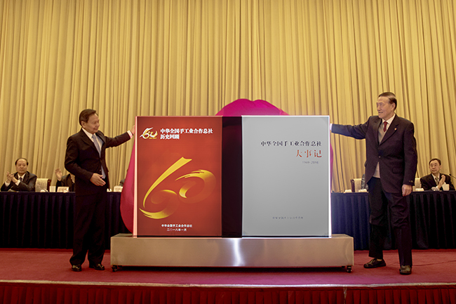 會議還舉行了中華全國手工業合作總社60周年紀念畫冊、大事記發行儀式。中華全國手工業合作總社主任張崇和、會社老領導陳士能共同為畫冊、紀念冊揭牌。